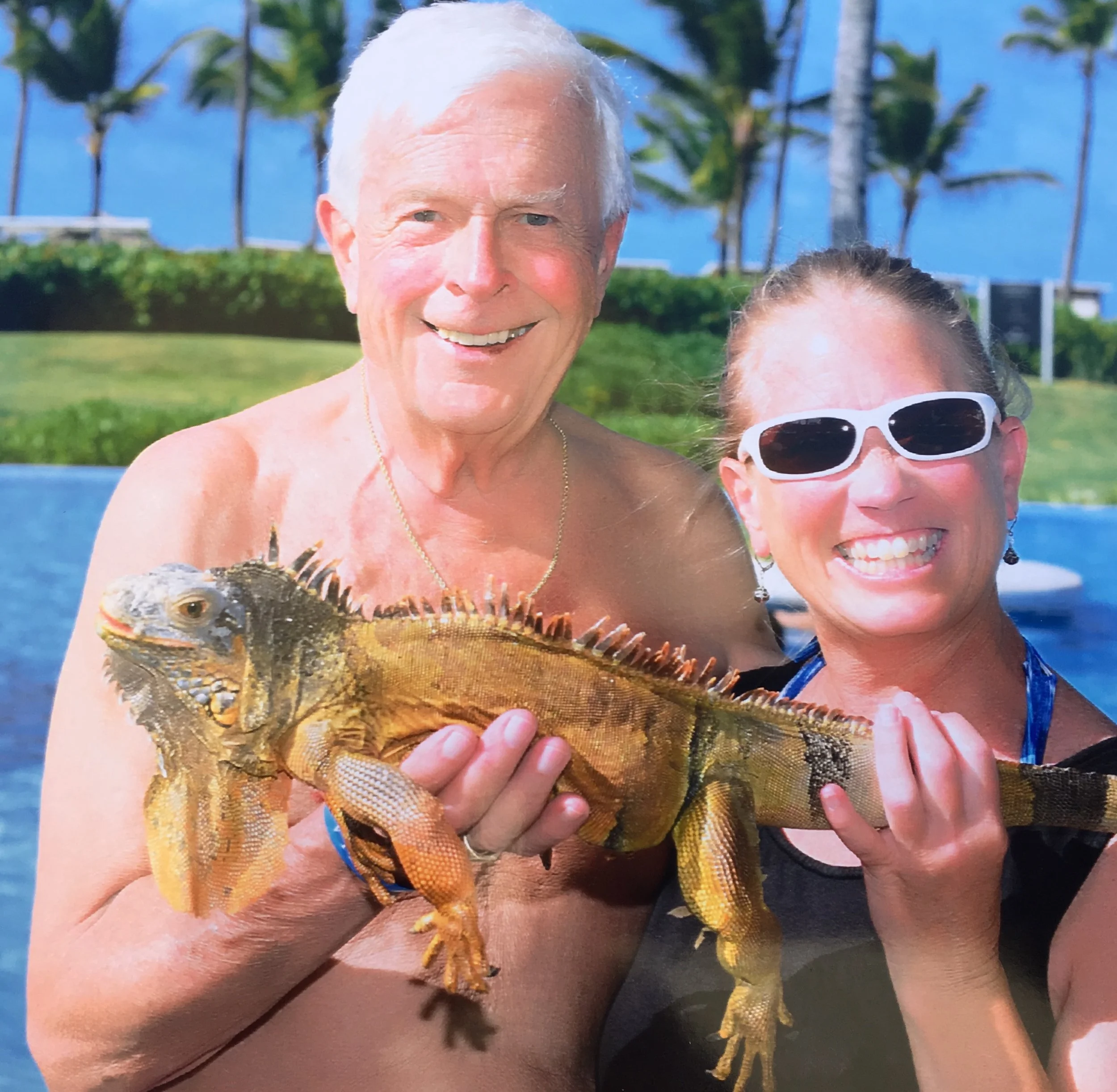 Richard, Wendy, and Maria the Iguana. Punta Cana, Dominican Republic, April 2019
