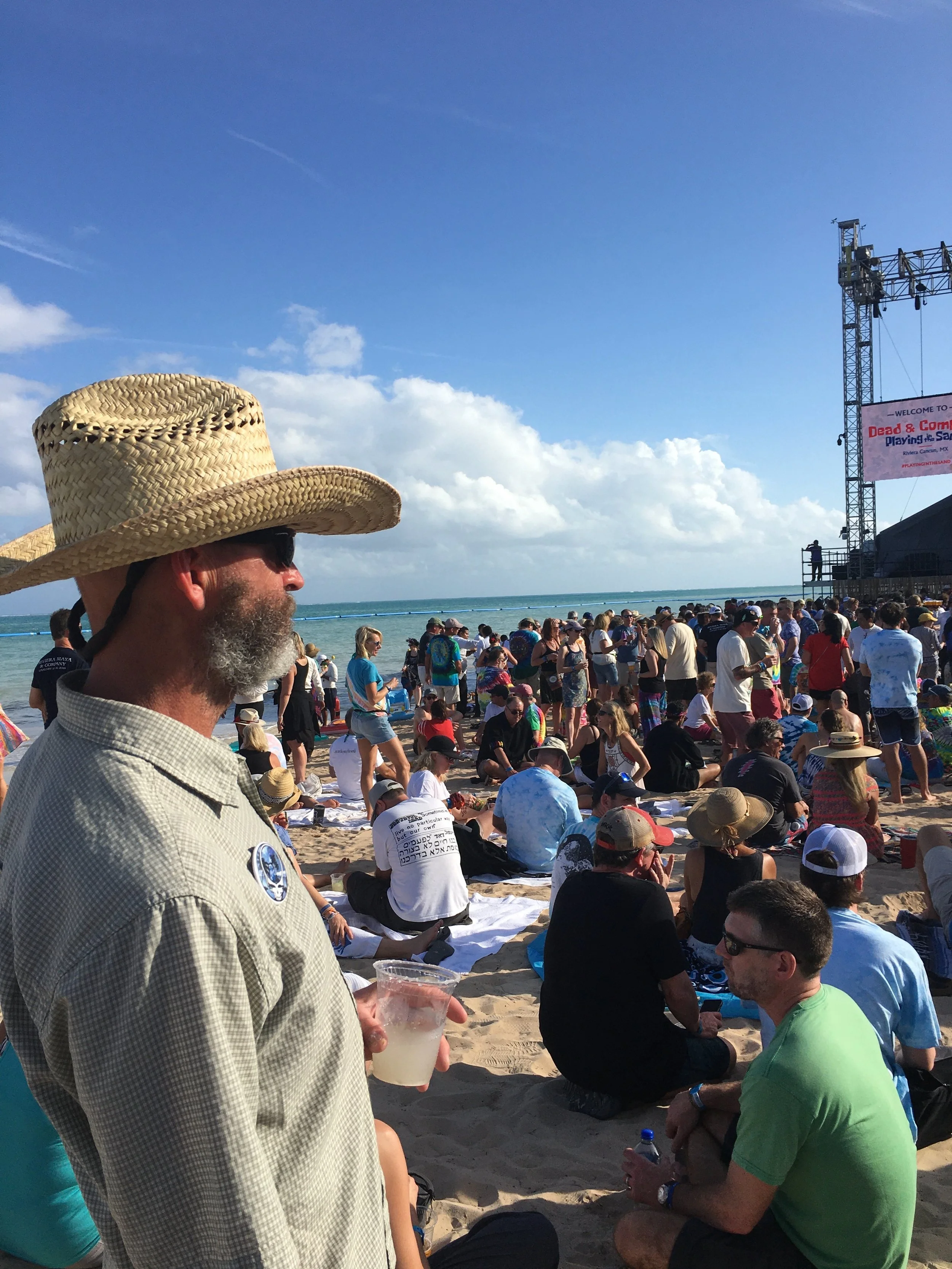 We drove from Leadville to Denver International Airport; the three hours in the car gave me time to think. Once we got to DIA, it was the usual semi-organized chaos that is getting through security, getting in line for TSA, taking your shoes, belts, etc. off. Getting to the gate. I remember Bloody Marys on the plane and the arrival in Cancun. One brief moment of disorganization was when Paul had handed me his passport temporarily, then I stepped away to see about going to the restroom, and lost Paul in the process. Upon my return, I found a furious Paul who asked me why I had left with his passport. It wasn't funny at the time, but as I look back at that moment, I realize that it could have been a comedic scene in a movie. We moved past that and found the shuttle to the Moon Palace in the Riviera Maya. When you go see music elsewhere in the country, you are usually greeted by the colorful Dead Head crowd that, in our case, filled the plane. Everyone was excited and ready for a few days of sun, sand, and Grateful Dead music. If you have ever wondered how to think about protecting a trip like this one, Force Majeure is worth a read before you book.